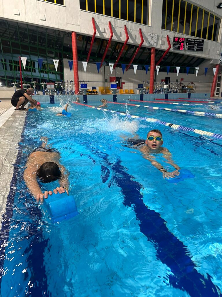 Zajęcia na basenie to aktywna i bezpieczna forma nauki pływania, która rozwija sprawność, pewność siebie i radość z ruchu w wodzie. 🏊♀️
